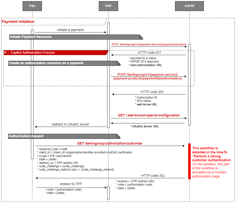 For specific BerlinGroup Implementation on the Payment Initiation Service, please refer to specific implementation How To.